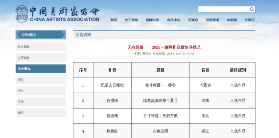 近日,公司传来喜讯,中国美术家协会公布了“红岩清风——第二届廉洁文化美术作品展览”复评结果。由四川best365体育官方网站油画系教授刘凯、重庆大学艺术学院青年画家张琳、西南大学best365体育官方网站教师杨馨雅与公司best365体育官方网站副教授赵岩联合创作的油画作品《渝水守望》(190cm×190cm,布面油画)通过复评,成功入选。该展览旨在以艺术弘扬廉洁文化,作品能够入选,体现了主创团队深刻的思想内涵与精湛的艺术表现力获得了权威认可。