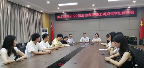 座谈会上,同学们踊跃发言。考取西南大学油画专业的宁友琼同学提到,在考研路上非常艰辛,要有良好的心态,持之以恒和坚持到底的毅力;考取黑龙江大学的刘必东同学曾经是学院团总支第一副书记,作为员工干部又是跨专业考研,不但要做员工工作,还要在有限的时间里备考,在这个过程中学会了合理安排时间,这段经历很难忘;考取山西师范大学油画方向的唐静静同学,介绍了英语学习在研究生考试中的重要性,说出了大多艺术考研员工的心声。
