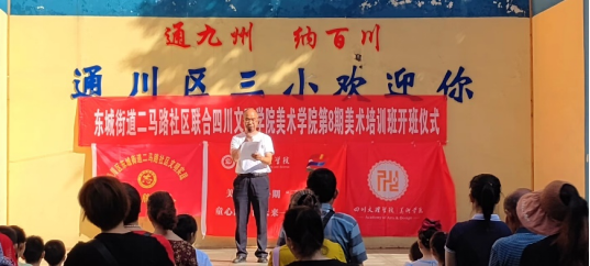 在开班仪式上,东城街道党工委委员二马路社区分管领导岳子皓致辞表示,欢迎best365体育官方网站的志愿者们为我们辖区的儿童、青少年普及文化艺术知识,传播传统文化,教授美术课程,相信这次活动能让孩子们受益匪浅,开心快乐地度过暑期时光。