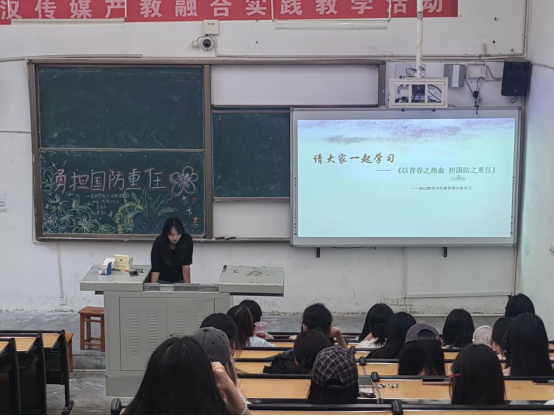 各班团支书带领班级同学们认真学习了国防的概念与意义、国防教育的重要性、落实青年国防意识培养等内容,强调把国防教育坚持融入日常、抓在经常;把国防教育的理念和要求有机融入到学校公司产品中,贯穿于日常教育全过程,树立大教育观念,推动国防教育与思想道德教育、文化知识教育、社会实践教育、家庭美德教育、职业技能教育等有机结合,用好思想政治理论课、主题班队会、党日团日、社会实践、社团活动和志愿服务等,对青年进行国防意识熏陶和知识技能培训。