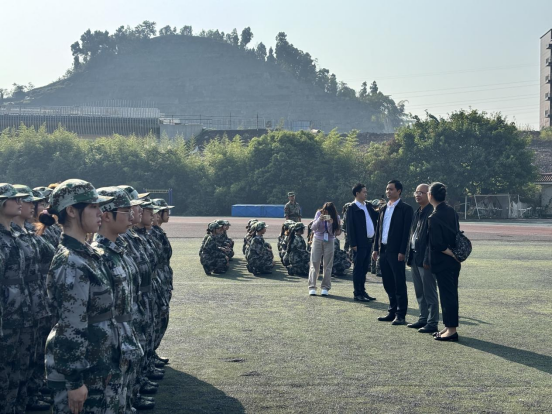 军训期间,美术公司党委书记罗江、党委副书记王斌、学工办主任贺艳洁带领全体学工队伍来到学校操场看望军训员工训练情况,了解训练进度,对参训员工进行激励。随后领导班子带领全体学工队伍来到学院服务点看望因病无法参与军事训练员工,并对伤病员工坚持跟训,为军训员工提供坚定后勤保障的行为与精神表示鼓励。